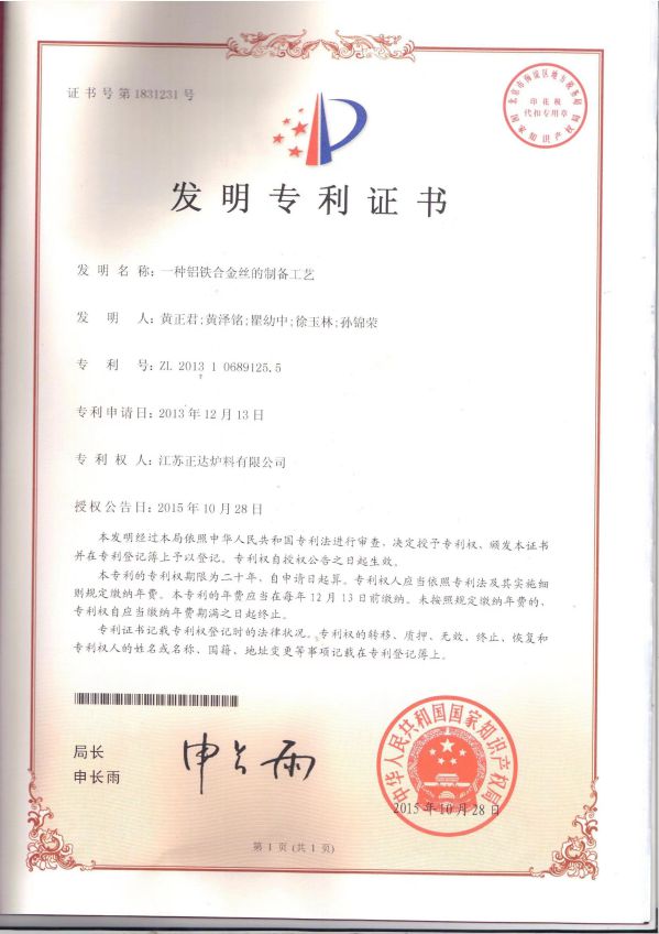 您現在所在的位置: > 首頁  >資質榮譽  >專利證書