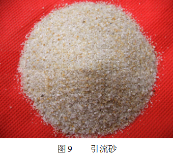 ZD系列引流砂采用經(jīng)機(jī)械處理過(guò)的球形顆粒和多種外加劑精制而成。具有良好的流動(dòng)性、壓實(shí)性和隔熱性。使用過(guò)程中不上浮,燒結(jié)性能良好,能有效形成蘑菇頭覆蓋層,自開(kāi)率高,外形如圖9,理化指標(biāo)見(jiàn)表11。