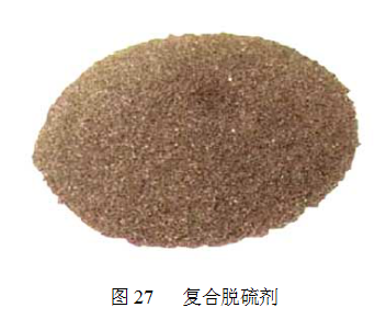 針對轉(zhuǎn)爐出鋼硫超標(biāo)或者下渣多導(dǎo)致回硫,若不處理將導(dǎo)致非計(jì)劃或等外品的問題,在分析鋼包渣以及精煉過程脫硫機(jī)理的基礎(chǔ)上開發(fā)了復(fù)合脫硫劑。該產(chǎn)品在轉(zhuǎn)爐出鋼時(shí)加入鋼包,渣洗鋼液,在脫除多余硫磺的同時(shí),調(diào)整鋼包渣渣態(tài),利于吸附鋼液中上浮的非金屬夾雜,凈化鋼液。該產(chǎn)品具有成渣速度快,脫硫效率高,是有效緩解煉鋼轉(zhuǎn)爐或電爐生產(chǎn)壓力的有效手段,外觀如圖27,理化指標(biāo)見表31。